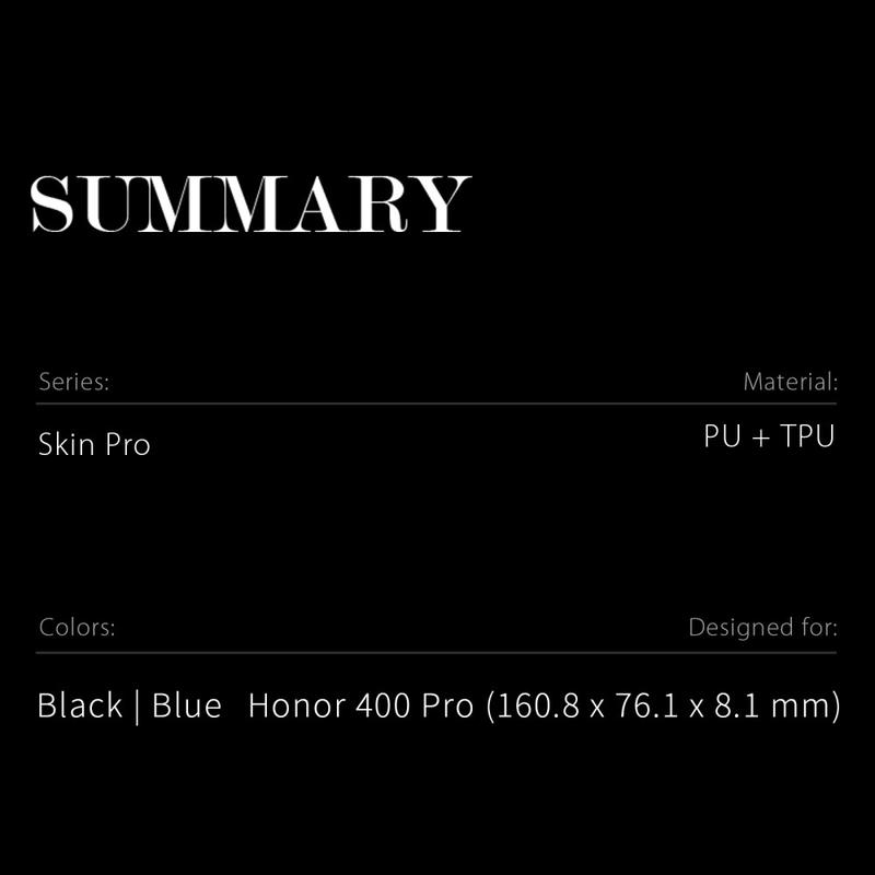 Gi den ultrarobuste Honor 400 Pro et raffinert utseende som fortsatt tåler daglige støt. Dux Ducis Skin Pro-dekselet pakker telefonen inn i glatt, ripebestandig polyuretan, mens et fleksibelt TPU-skall på innsiden demper støt. Et diskret kortspor og et utfellbart visningsstativ gir praktisk funksjonalitet uten ekstra vekt.