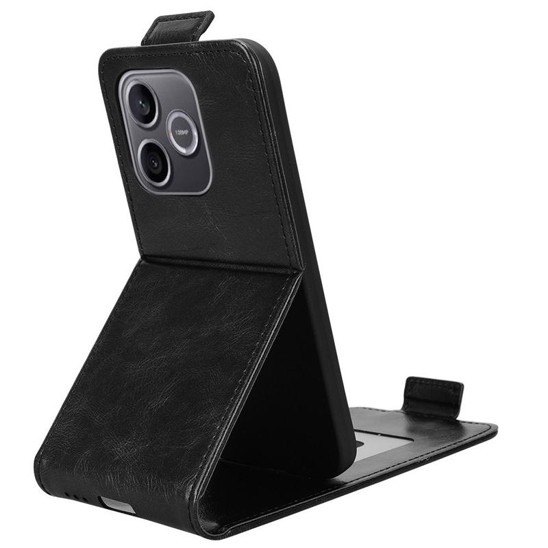 Honor 600 Lite vertikalt flip-etui med stativ - svart