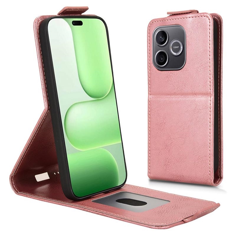 Honor 600 Lite vertikalt flip-etui med stativ - Roségull