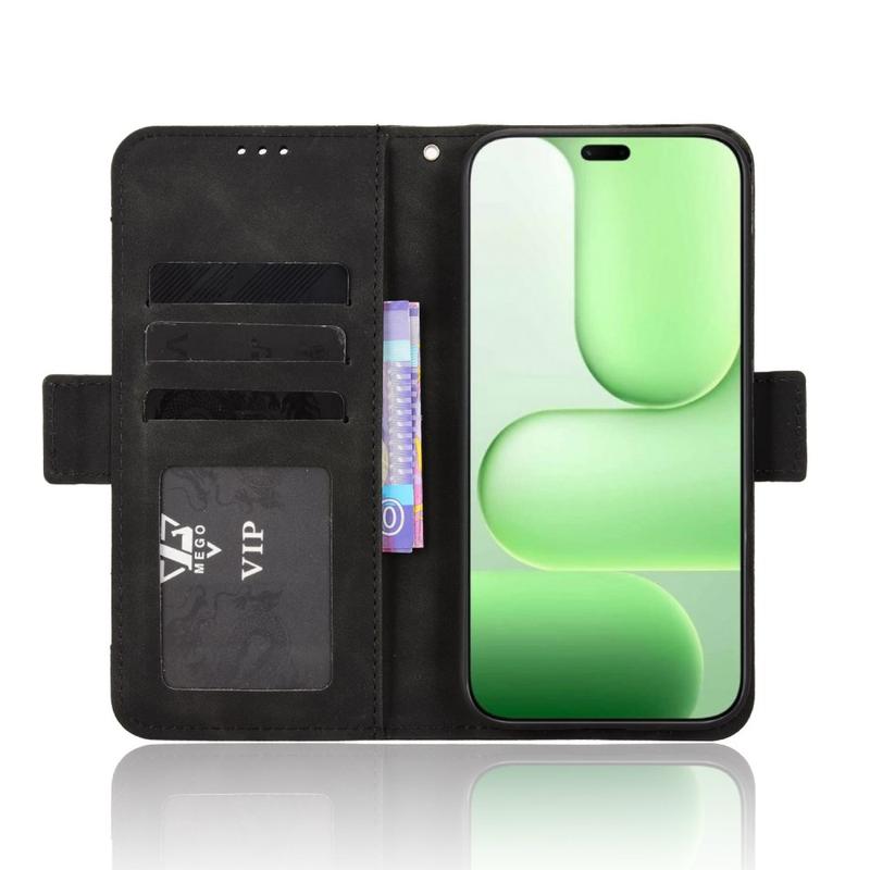 - Flere kortspor: Utstyrt med flere kortspor for oppbevaring av kredittkort, ID-kort og kontanter, slik at du har alt du trenger organisert og lett tilgjengelig.