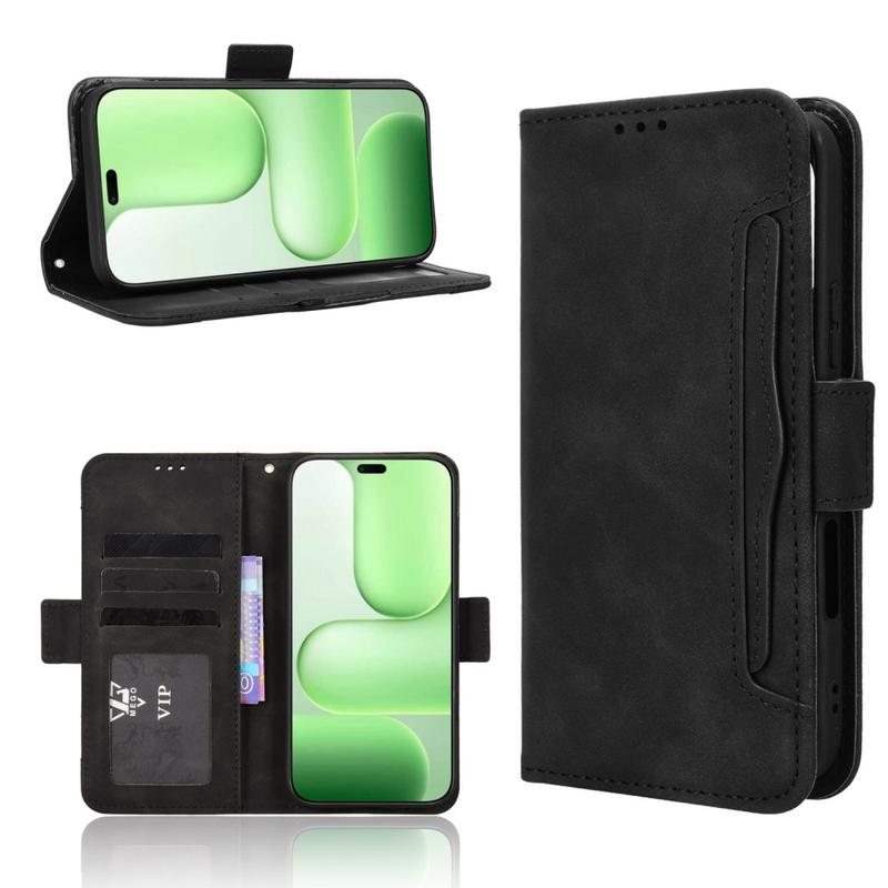- Magnetisk lukking: Den sikre magnetiske klaffen holder lommeboketuiet lukket, slik at telefonen og kortene dine er trygge på innsiden (Vekt: ca. 0,15 kg).