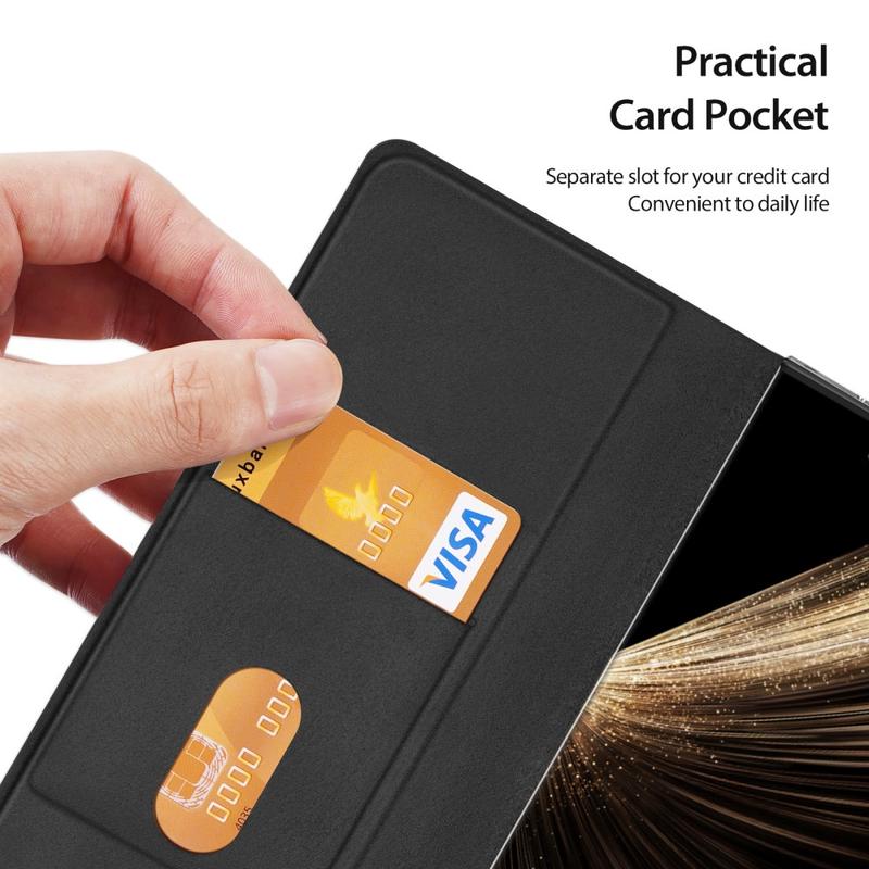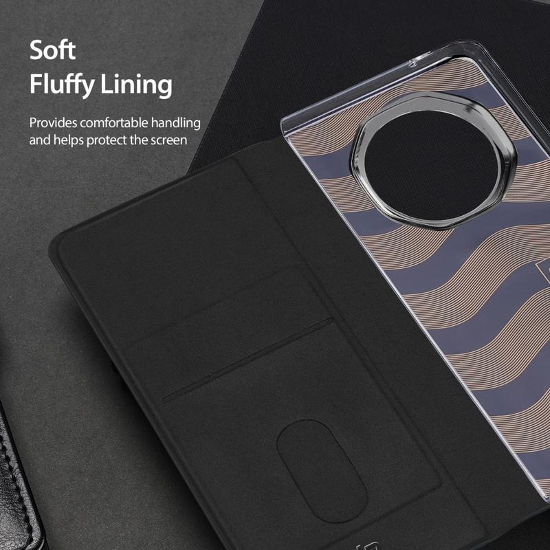 Gi beskyttelse på høyeste nivå for din dyrebare Honor Magic V5, og gi den et slående og iøynefallende utseende med dette førsteklasses flip-dekselet fra Dux Ducis. Dekselet har hevet kant rundt kameraet for ekstra sikkerhet og ett innvendig kortspor for ditt ID-kort, bankkort eller et annet hovedkort.