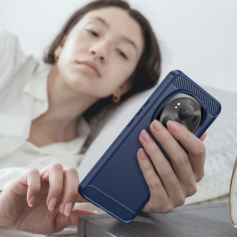 Honor Magic6 Pro Børstet TPU Deksel - Karbonfiber - Blå