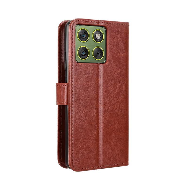 Navnet "Crazy Horse" kommer fra tradisjonelt hestesadelmakeri; den strukturerte overflaten er behandlet med voks som skaper en tofarget pull-up-effekt som etterligner fullnarvet skinn, samtidig som det er dyrevennlig, lettere og mer ripebestandig. Det gjør det ideelt for daglig bruk av telefontilbehør der både holdbarhet og stil er viktig.
