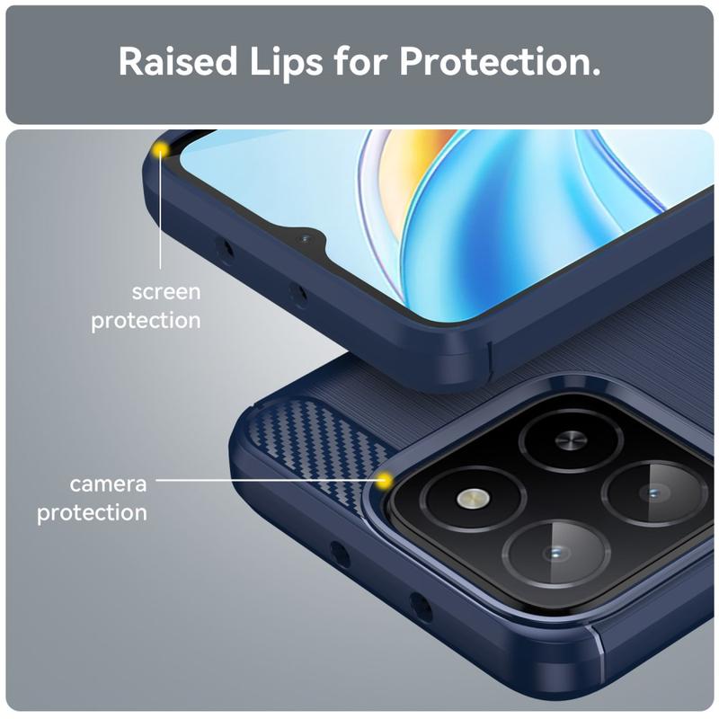 Det børstede TPU-dekselet beskytter din Honor X5b, Honor X5b Plus tilstrekkelig, samtidig som det gir den en flott stil, takket være karbonfibermønsteret på baksiden. Dekselet sikrer også overoppheting når du bruker Honor X5b, Honor X5b Plus, med sitt varmespredningsdesign.