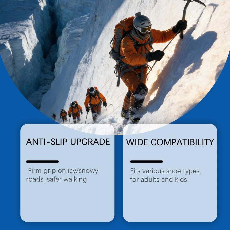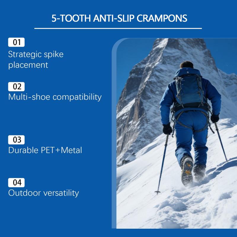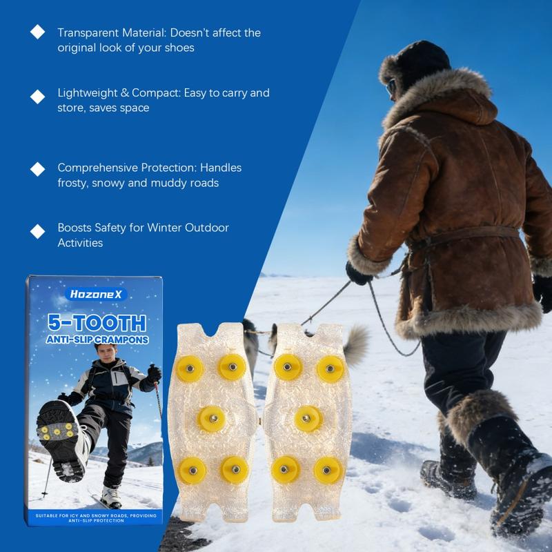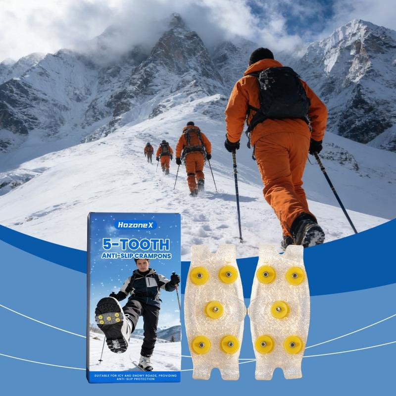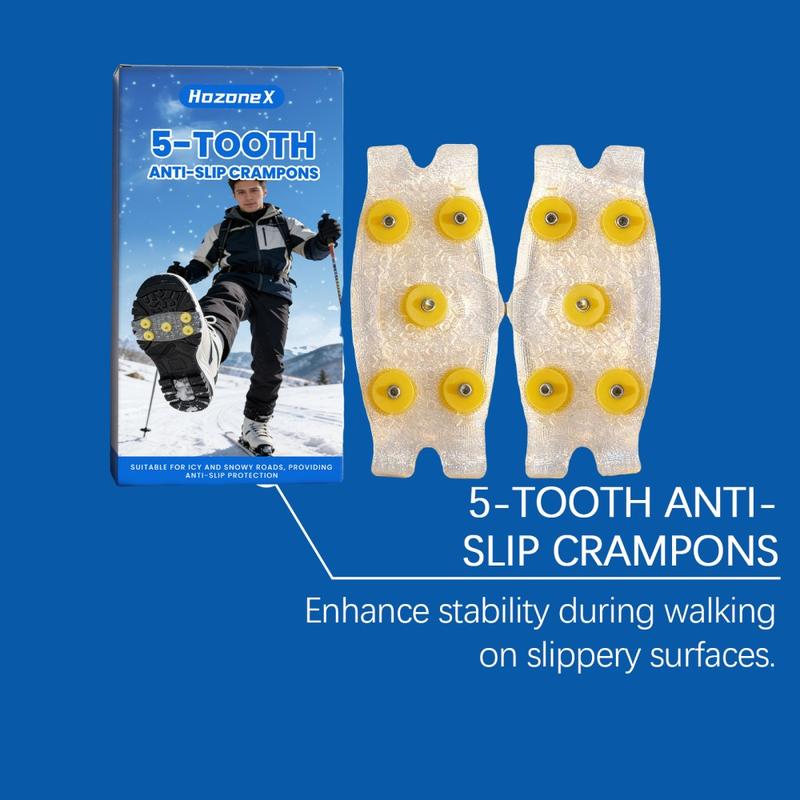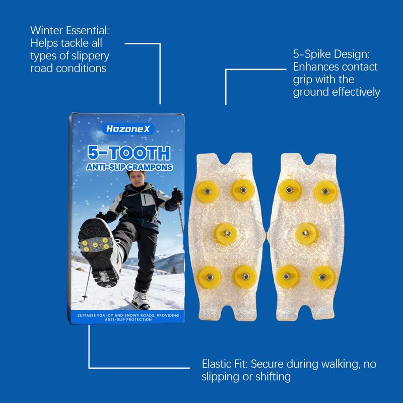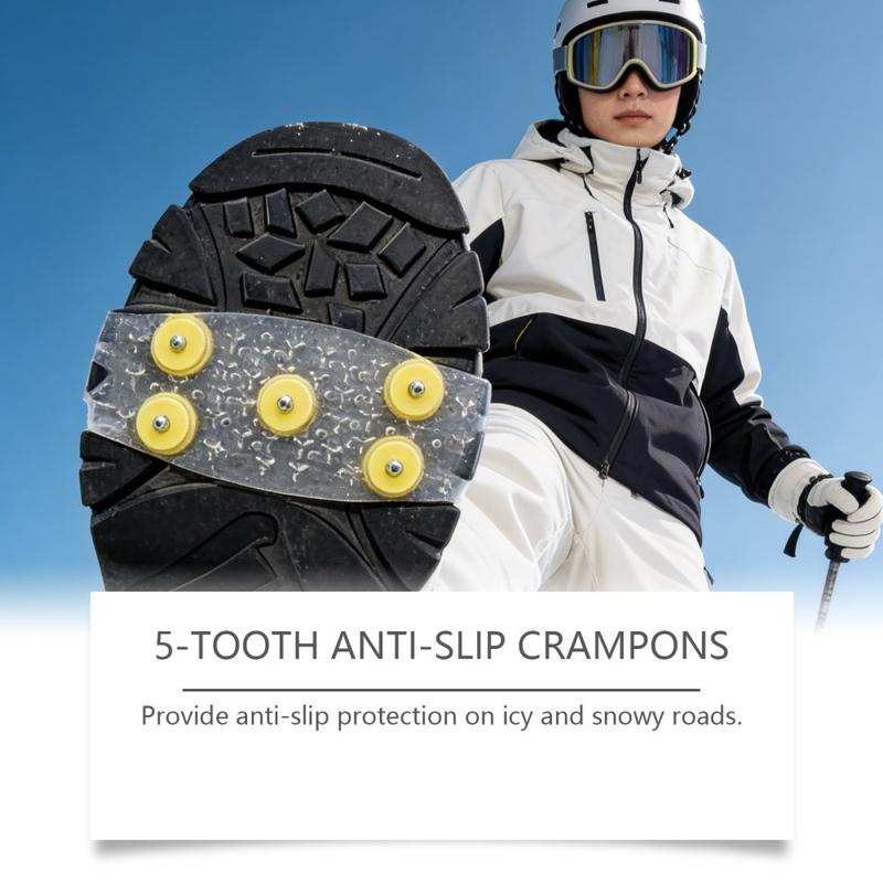 Gå tryggere på isete stier og snødekte gater med HOZONEX 5-tanns isbrodder. Hver brodd er designet for å forbedre grepet på glatte overflater og har 5 strategisk plasserte metallpigger som øker kontakten med underlaget og reduserer risikoen for å skli når forholdene blir glatte. Den fleksible TPE-basen strekker seg over mange skotyper og gir en sikker passform som holder seg stabil under gange uten å skli rundt.