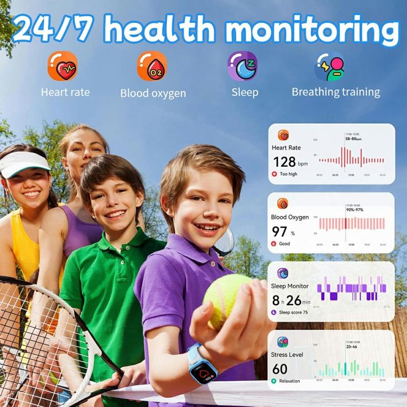 HT40 Kids smartklokke er designet for å støtte barns læring, aktivitet og sikkerhet i hverdagen i en brukervennlig bærbar enhet. Med innebygd pedagogisk innhold, helsesporing 24/7 og sportsmoduser hjelper den barn å holde seg aktive mens de lærer gjennom lek. Klokken fungerer uavhengig uten smarttelefon, noe som gjør den enkel og barnevennlig, mens sikkerhetsfunksjoner som doble lommelykter og SOS gir trygghet. HT40 er lett, vanntett og fullpakket med smarte funksjoner, og er laget for nysgjerrige barn og travle familier.