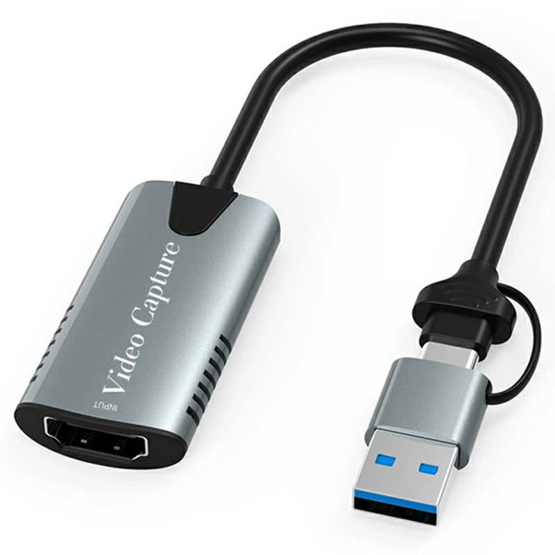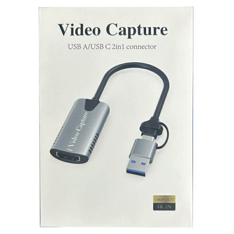 HU-04A 2-i-1 HDMI til USB-C/USB-A-videokort - adapter for streaming og opptak i 1080p
