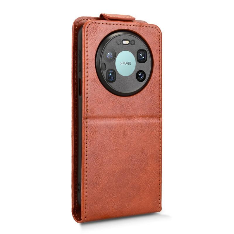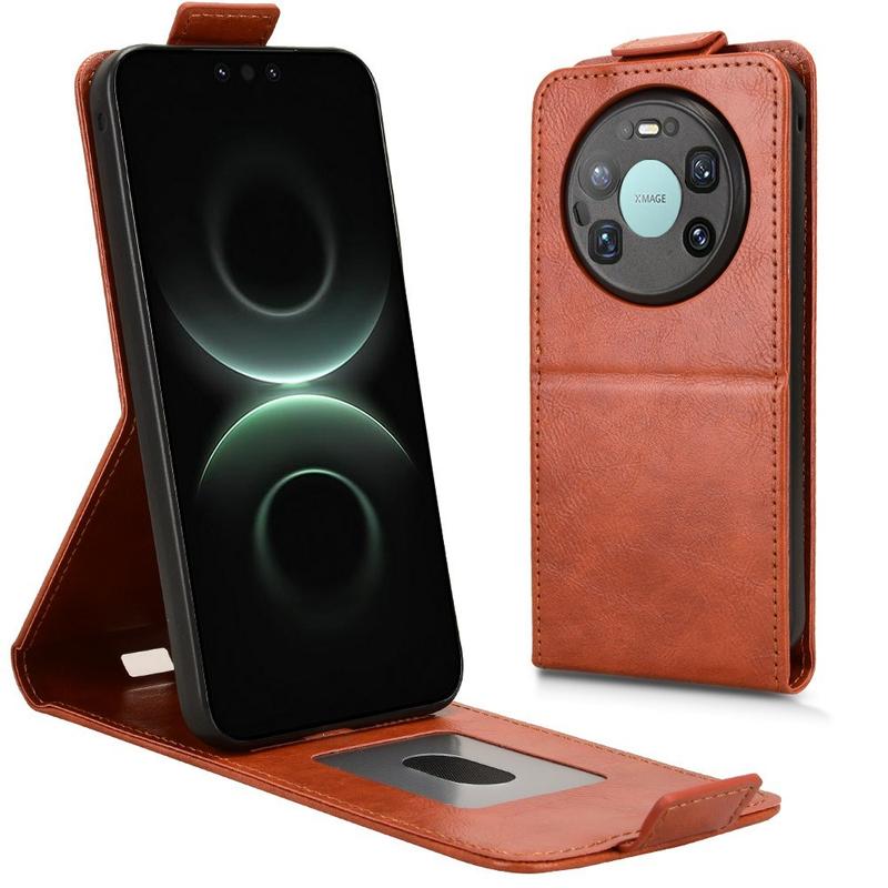 Huawei Mate 80 Pro Max vertikalt flip-etui med stativ - Brun
