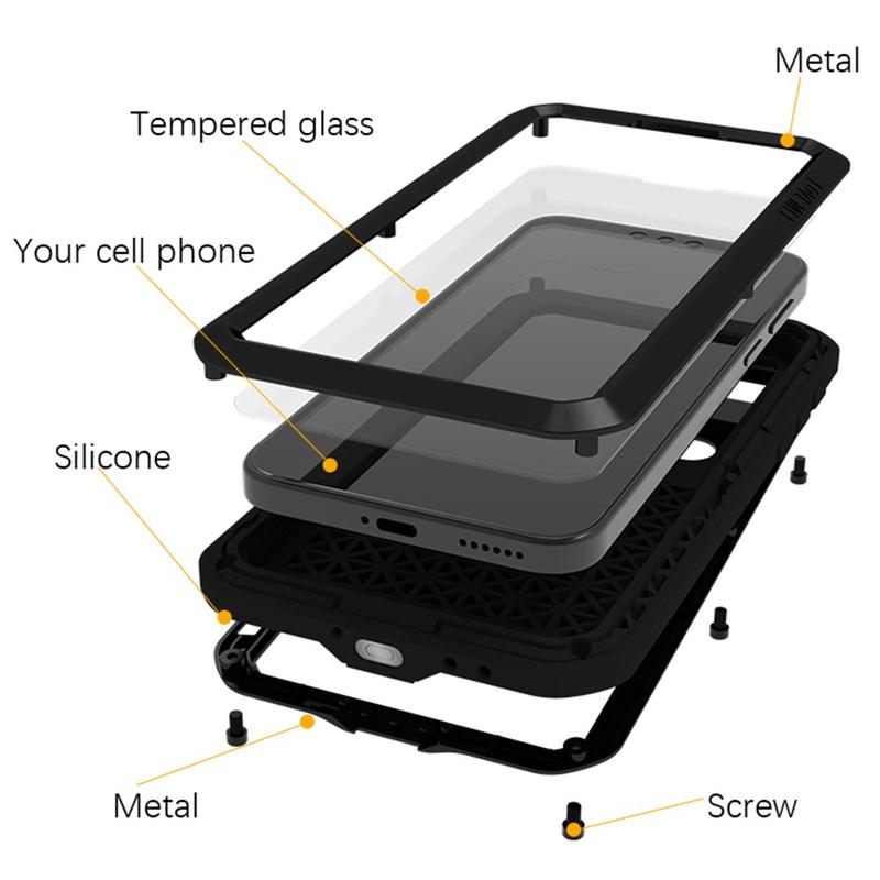 - Skruelåsdesign - Forsterket med sikre skruelåshjørner som forsegler etuiet godt, slik at telefonen din er beskyttet mot fall, støt og røff håndtering.