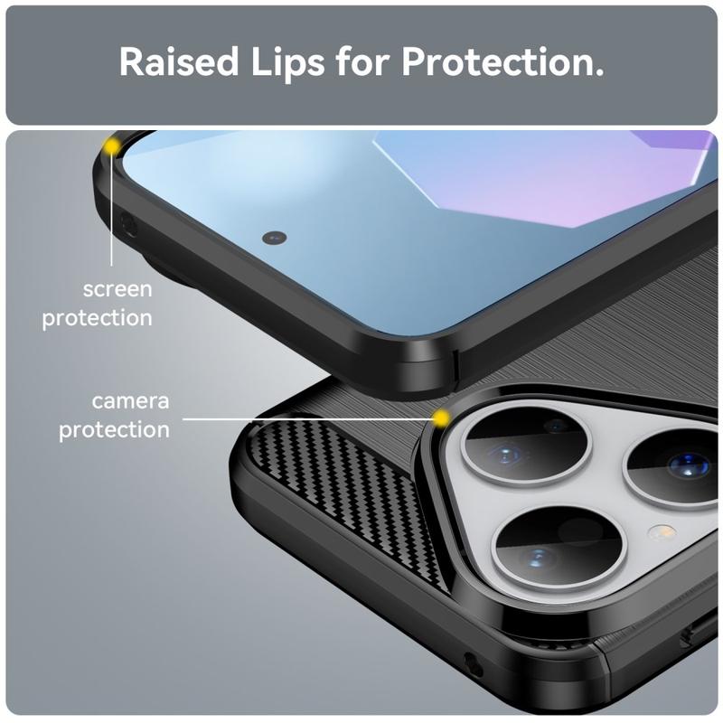 Gi din Huawei Pura 80 den stilige beskyttelsen den fortjener med dette børstede dekselet med karbonfiberstruktur. Det kombinerer en elegant, børstet overflate med en robust, beskyttende design, og beskytter enheten din mot daglige støt og riper samtidig som det gir et komfortabelt grep.