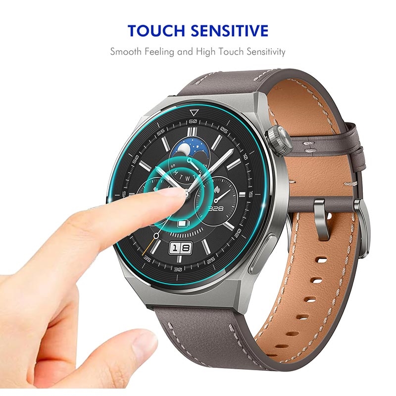 Denne Huawei Watch GT 5-skjermbeskytteren i herdet glass har en hardhetsstandard på 9H, slik at nøkler og mynter i lommen ikke kan skade den. Selv om den har 9H-holdbarhet, er den herdede glassskjermbeskytteren også ultratynn, og måler kun 0,3 mm, noe som gjør at den kan beholde alle berøringsskjermfunksjoner.