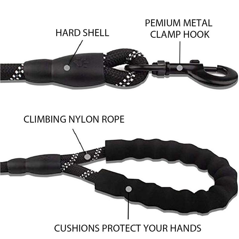 Dette slitesterke hundebåndet er laget av strekkfast nylontau av høy kvalitet, designet for å tåle hundens trekkraft under gåturer og treningsøkter. Båndet har et mykt EVA-polstret håndtak som gir et komfortabelt grep og beskytter hånden mot å brenne seg på tauet. Båndet har refleksdetaljer som gjør det mer synlig på kveldsturer, noe som øker sikkerheten for både deg og hunden din. Den kraftige sinklegeringsklemmen med 360-graders rotasjon forhindrer at tauet vikler seg sammen, noe som gjør det enkelt og behagelig å gå ut.