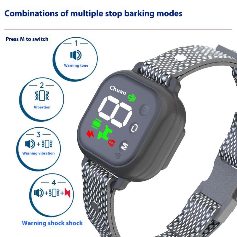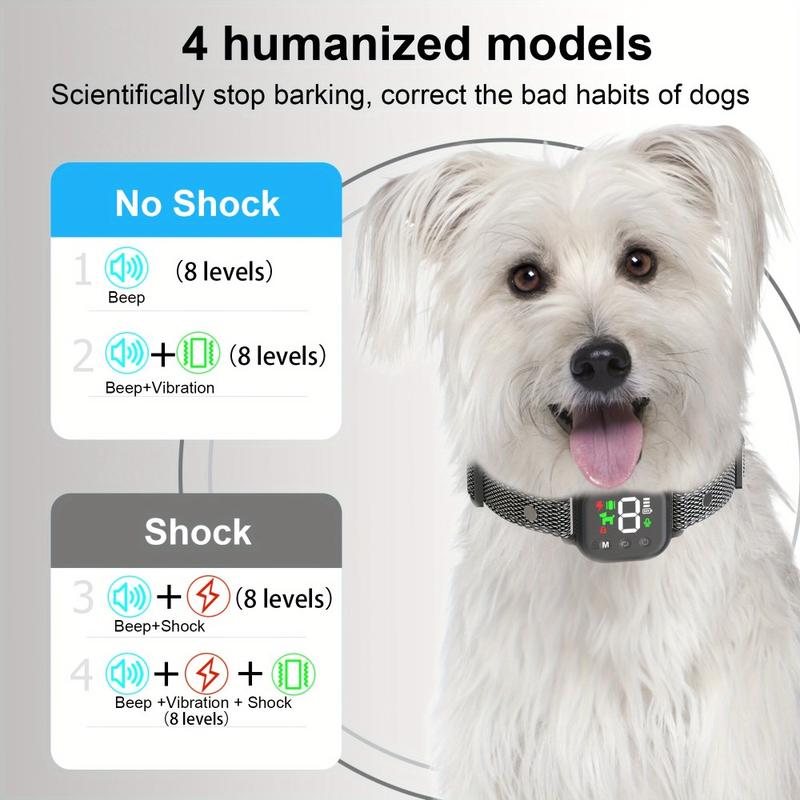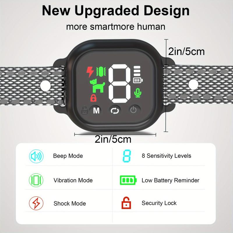 Dog Bark Control-halsbåndet er en allsidig treningsløsning med fargeskjerm og flere korreksjonsmodi, inkludert støt, vibrasjon og lyd. Dette halsbåndet er designet for sikker og effektiv trening, og det oppdager automatisk bjeffing og bruker riktig korreksjon. Det er sertifisert med CE, FCC, UN38.3 og MSDS, noe som garanterer både sikkerhet og kvalitet. Den slitesterke, justerbare designen passer til hunder i ulike størrelser, noe som gjør det perfekt til trening og atferdsregulering.