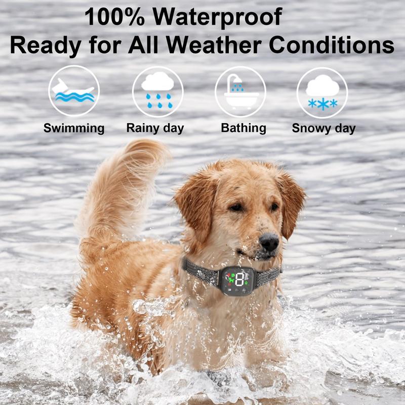 Hundebjeffkontrollhalsbånd med fargeskjerm - Sjokk, vibrasjon og lyd automatisk trener - Vanntett nivå: IP67, Halsbåndets lengde: 10-70 cm