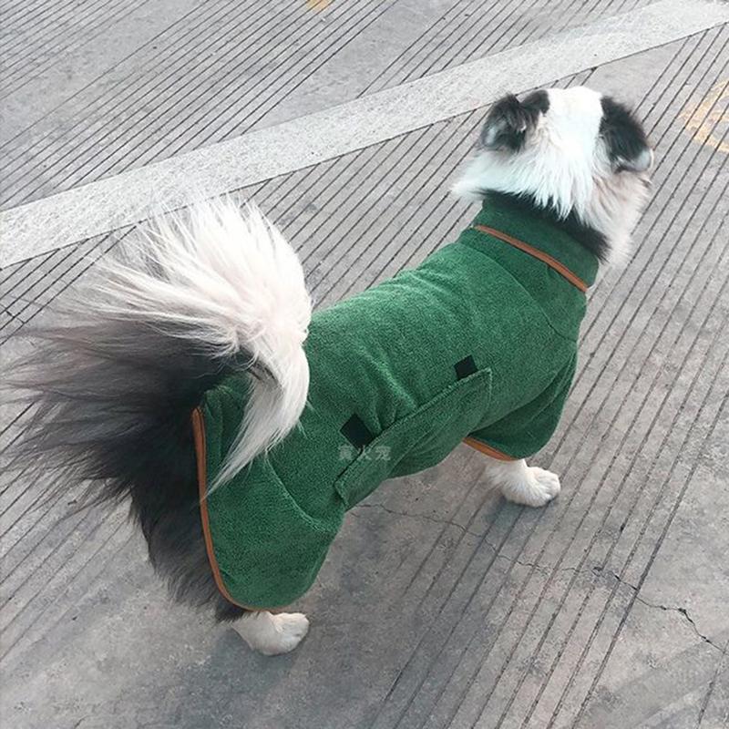 Dog Bath Robe Towel er den ultimate løsningen for å tørke kjæledyret ditt raskt og komfortabelt. Håndkleet er laget av mikrofiber av høy kvalitet og har utmerket absorberingsevne og en myk følelse, perfekt for å holde din pelskledde venn tørr etter bading, svømmeturer eller turer i regnvær. Den justerbare designen gir en tettsittende passform, og den lette og bærbare egenskapen gjør det til et must-have både hjemme og på reise.