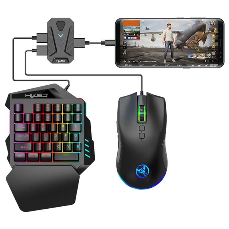 Settet inneholder et enhåndstastatur og en mus, samt en USB-hub som lar deg koble den til Android- og iOS-smarttelefoner. Alle tre er konstruert for bunnsolid ytelse og presisjon, noe som gir deg en nesten urettferdig fordel i forhold til motstanderne i konkurransedyktige mobilspill.