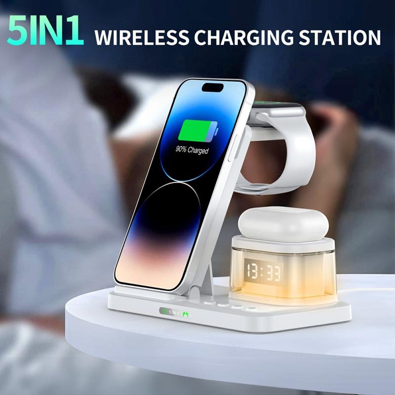 Oppgrader til HYY-H33 5-i-1 trådløs ladestasjon - din alt-i-ett-løsning for lading og nattlys for et smartere, ryddigere rom!