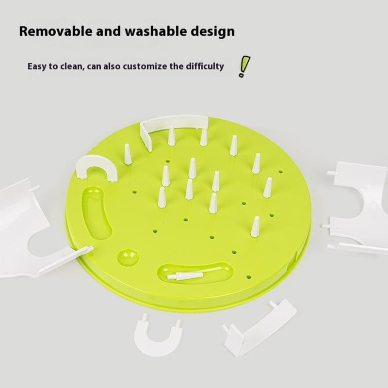 - Justerbar vanskelighetsgrad: Med avtakbare paneler som gjør det mulig å tilpasse labyrintens vanskelighetsgrad, slik at kjæledyret ditt blir underholdt og engasjert under måltidene.