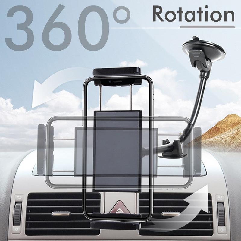 - Nettbrett- og iPad-holder for montering på bilens frontrute eller midtre dashbord