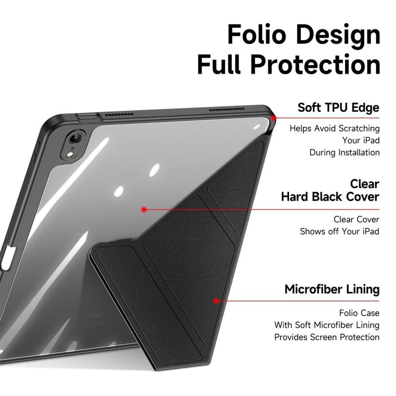 Ultratynn: Den slanke, lette og myke fronten er laget av førsteklasses PU-skinn, det ripefrie interiøret gir god beskyttelse, og TPU-rammen + PC-baksiden gjør nettbrettet mer stabilt.