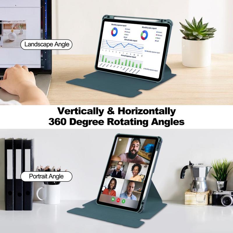 Roterende nettbrettvesker ble stadig mer populære etter hvert som skjermene ble større og mer uunnværlige i hverdagen. Den 360° dreibare vinkelen gir ergonomiske fordeler og hjelper deg med å oppnå den ideelle vinkelen for visning og skriving. I tillegg minimerer denne designen belastningen på nakken ved at du kan plassere skjermen i den høyden og retningen som er mest behagelig for deg, noe som forbedrer den generelle opplevelsen av nettbrettet.