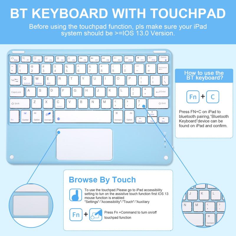 iPad Air 11 2026/2025/2024, iPad Air 2022/2020 Bluetooth-tastaturetui med bakgrunnsbelysning, berøringsplate og stativ - US-tastaturoppsett