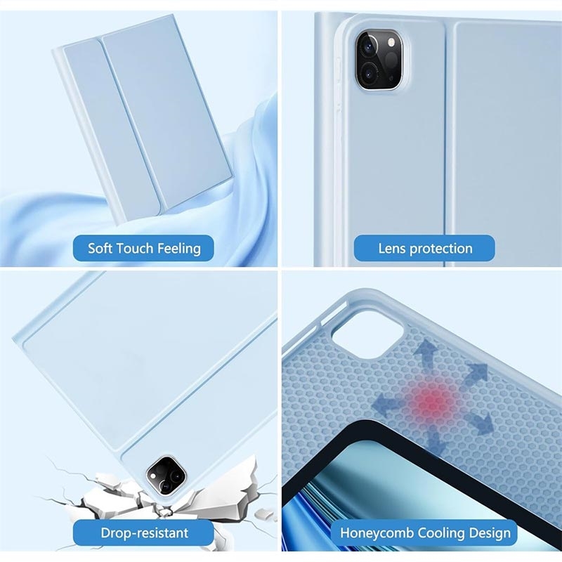 Gjør din iPad Air 13 2026/2025/2024, iPad Pro 12.9 2022/2021/2020/2018 enda bedre med Bluetooth-tastaturetuiet, et multifunksjonelt 2-i-1-tilbehør som kombinerer beskyttelse, produktivitet og stil. Dette elegante etuiet er laget av førsteklasses polyetan og gir full beskyttelse mot riper, støt og fingeravtrykk, samtidig som det gir et profesjonelt utseende. Bluetooth-tastaturet kobles trådløst til for smidig, responsiv skriving, mens den integrerte styreplaten støtter multigest-kontroll for uanstrengt navigering. Tastaturet har bakgrunnsbelysning, slik at du kan skrive komfortabelt selv i omgivelser med lite lys. Det innebygde justerbare stativet gir en ergonomisk synsvinkel, noe som gjør den perfekt for skriving, strømming eller lesing. Dette tastaturetuiet er designet for forretningsbruk, reiser eller hverdagsbruk, og forvandler nettbrettet ditt til en bærbar arbeidsstasjon.