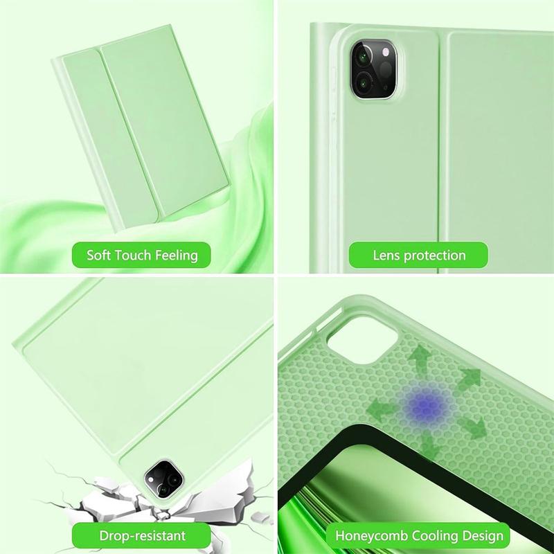 Gjør din iPad Air 13 2026/2025/2024, iPad Pro 12.9 2022/2021/2020/2018 enda bedre med Bluetooth-tastaturetuiet, et multifunksjonelt 2-i-1-tilbehør som kombinerer beskyttelse, produktivitet og stil. Dette elegante etuiet er laget av førsteklasses polyetan og gir full beskyttelse mot riper, støt og fingeravtrykk, samtidig som det gir et profesjonelt utseende. Bluetooth-tastaturet kobles trådløst til for smidig, responsiv skriving, mens den integrerte styreplaten støtter multigest-kontroll for uanstrengt navigering. Tastaturet har bakgrunnsbelysning, slik at du kan skrive komfortabelt selv i omgivelser med lite lys. Det innebygde justerbare stativet gir en ergonomisk synsvinkel, noe som gjør den perfekt for skriving, strømming eller lesing. Dette tastaturetuiet er designet for forretningsbruk, reiser eller hverdagsbruk, og forvandler nettbrettet ditt til en bærbar arbeidsstasjon.