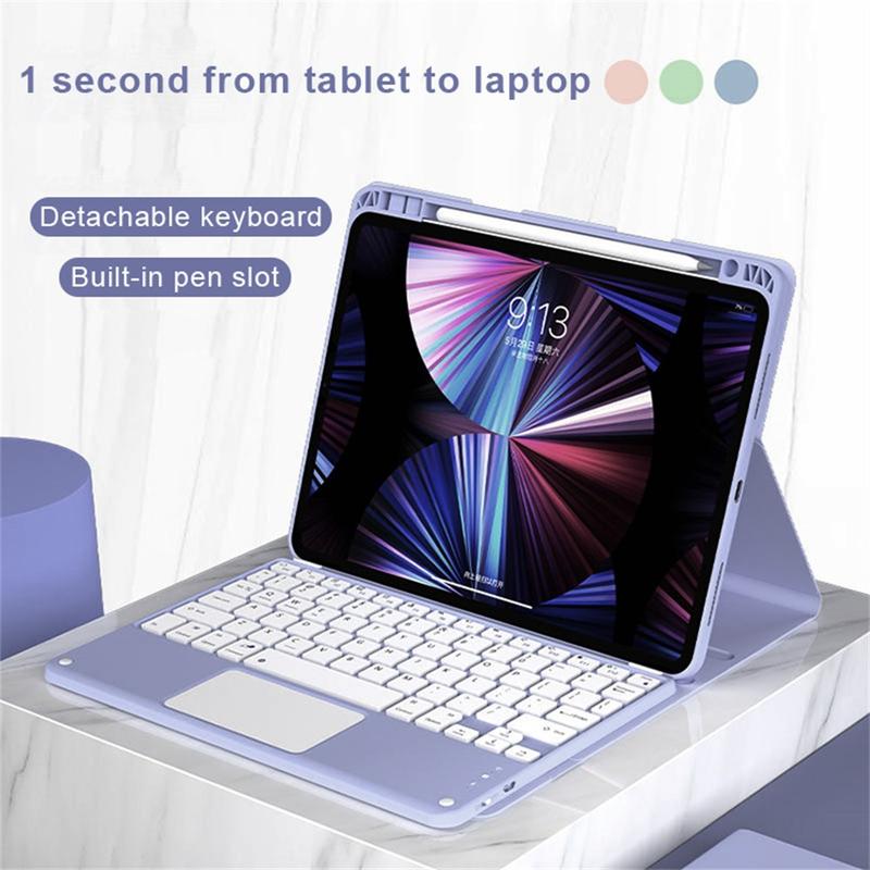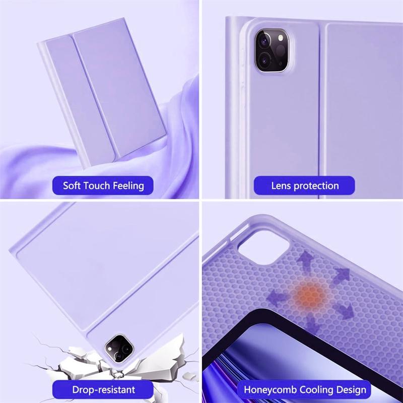 Gjør din iPad Air 13 2026/2025/2024, iPad Pro 12.9 2022/2021/2020/2018 enda bedre med Bluetooth-tastaturetuiet, et multifunksjonelt 2-i-1-tilbehør som kombinerer beskyttelse, produktivitet og stil. Dette elegante etuiet er laget av førsteklasses polyetan og gir full beskyttelse mot riper, støt og fingeravtrykk, samtidig som det gir et profesjonelt utseende. Bluetooth-tastaturet kobles trådløst til for smidig, responsiv skriving, mens den integrerte styreplaten støtter multigest-kontroll for uanstrengt navigering. Tastaturet har bakgrunnsbelysning, slik at du kan skrive komfortabelt selv i omgivelser med lite lys. Det innebygde justerbare stativet gir en ergonomisk synsvinkel, noe som gjør den perfekt for skriving, strømming eller lesing. Dette tastaturetuiet er designet for forretningsbruk, reiser eller hverdagsbruk, og forvandler nettbrettet ditt til en bærbar arbeidsstasjon.