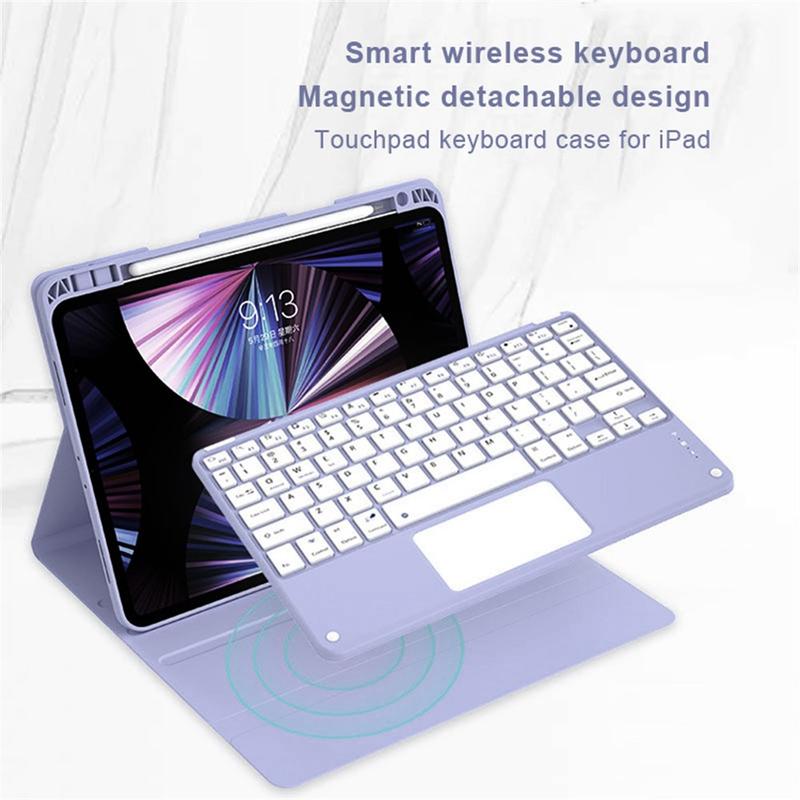 iPad Air 13 2026/2025/2024, iPad Pro 12.9 2022/2021/2020/2018 Bluetooth-tastaturetui med bakgrunnsbelysning, berøringsplate og stativ - US-tastaturoppsett