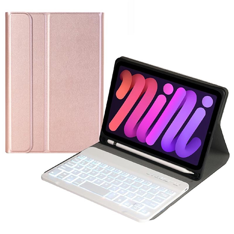iPad Mini (2021), iPad Mini (2024) Bluetooth-tastaturetui med bakgrunnsbelysning, berøringsplate og stativ - US-tastaturoppsett