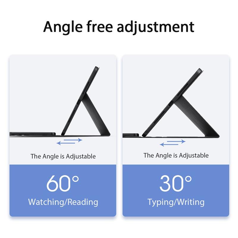 Slank og lett design gjør at du enkelt kan bære dette fantastiske Dux Ducis Bluetooth-tastaturet til iPad Pro 11 (2024), iPad Pro 11 (2025) overalt. 2-i-1, Bluetooth-tastatur og et nettbrettdeksel. Tastaturet er festet med en dobbel magnet, og det er veldig stabilt og vil ikke bevege seg unødig. Den har også en berøringsplate med justerbar følsomhet og en langvarig knapp. Nyt håndfri opplevelse ved å bruke et dekel som støttestativ.