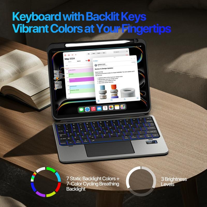 DUX DUCIS VK-serien er mer enn et etui - det er et komplett produktivitetsverktøy for iPad Pro 11 (2024), iPad Pro 11 (2025). Med bakgrunnsbelyst tastatur, smart pekeplate, LED-statusskjerm og en fullstendig beskyttende konstruksjon er det det ultimate tilbehøret for profesjonelle, studenter og kreative.