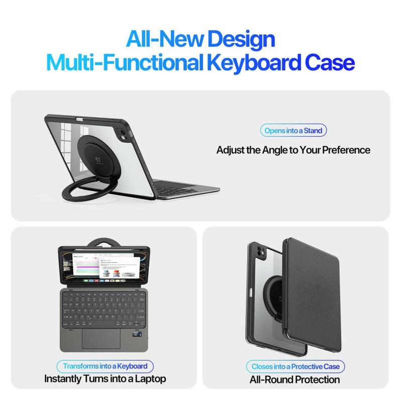 DUX DUCIS VK Series Keyboard Case forvandler din iPad Pro 11 (2024), iPad Pro 11 (2025) til en allsidig arbeidsstasjon og underholdningshub. Det kombinerer et beskyttende etui, avtakbart tastatur, multi-touch-styreflate og kickstand, og tilpasser seg ethvert scenario med en enkel åpne-lukke-funksjon.