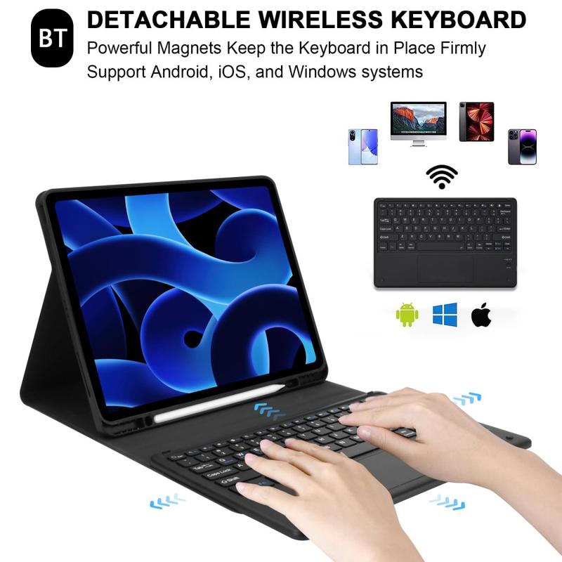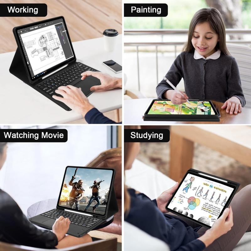 Dette Bluetooth tastaturet forvandler iPad Pro 12.9 2018/2020/2021/2022 til en bærbar PC om noen få sekunder. Du kan bruke Bluetooth tastaturet separat fra vesken. Et perfekt valg for å øke brukeropplevelsen mens du holder iPad Pro 12.9 2018/2020/2021/2022 i beste stand og beskyttet mot skade.
