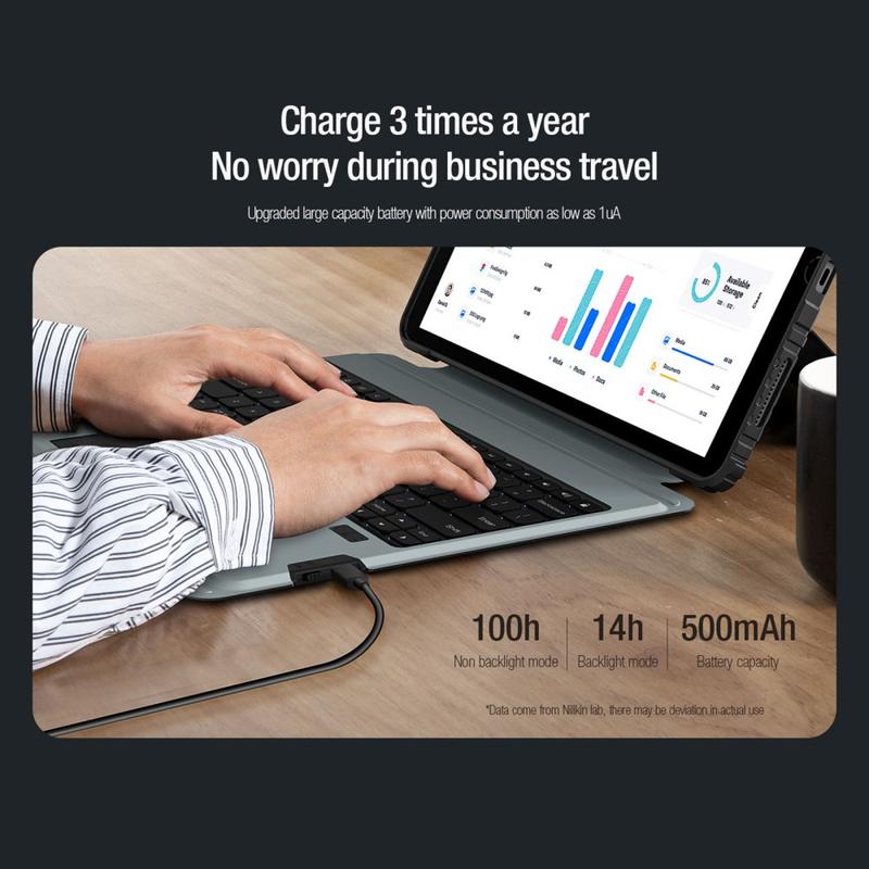 Nillkin Bumper Combo Bluetooth-tastaturdekselet er designet for å gi beskyttelse og utvide funksjonene på din iPad Pro 13 (2024), iPad Pro 13 (2025). Dette multifunksjonsdekselet kommer med et justerbart stativ, avtakbart tastatur og smart styreflate for praktisk skriving, se, lese og skissere på din iPad Pro 13 (2024), iPad Pro 13 (2025). En annen funksjon er skyvedekselet til iPad Pro 13 (2024), iPad Pro 13 (2025) kamera som holder riper og støv unna.