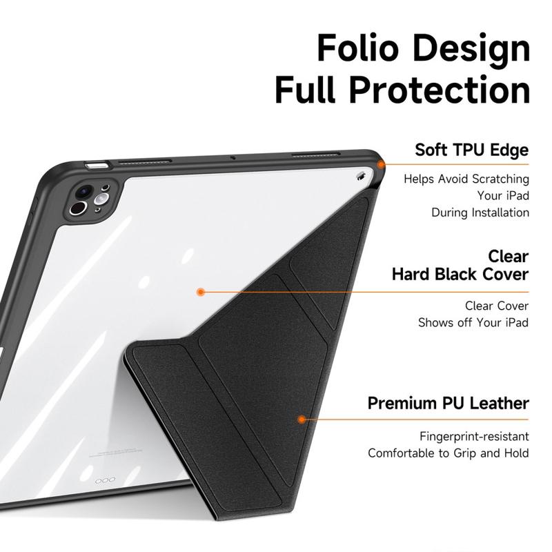Ultratynn: Den slanke, lette og myke fronten er laget av førsteklasses PU-skinn, det ripefrie interiøret gir god beskyttelse, og TPU-rammen + PC-baksiden gjør nettbrettet mer stabilt.