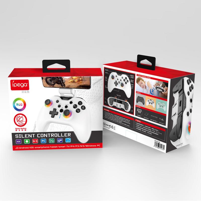iPega 9111 Wireless Gaming Controller er det ultimate spilltilbehøret som er designet for komfort, stil og ytelse. Med sin unike design med lydløse knapper sørger denne kontrolleren for en stillegående spillopplevelse, slik at du kan fokusere fullt og helt på spillet uten å forstyrre omgivelsene. Kontrolleren er utstyrt med levende RGB-bakgrunnsbelysning som gir en unik atmosfære til spillingen din. Med programmerbare M1- og M2-knapper kan du enkelt tilpasse kontrolleren til dine spesifikke behov, og med Turbo-funksjonen kan du utløse raske, repeterende handlinger som skyting med bare én knapp. Doble vibrasjonsmotorer gir realistiske tilbakemeldinger som øker innlevelsen. En mobiltelefonholder er inkludert, noe som gjør denne kontrolleren perfekt for spilling hjemme eller på farten.