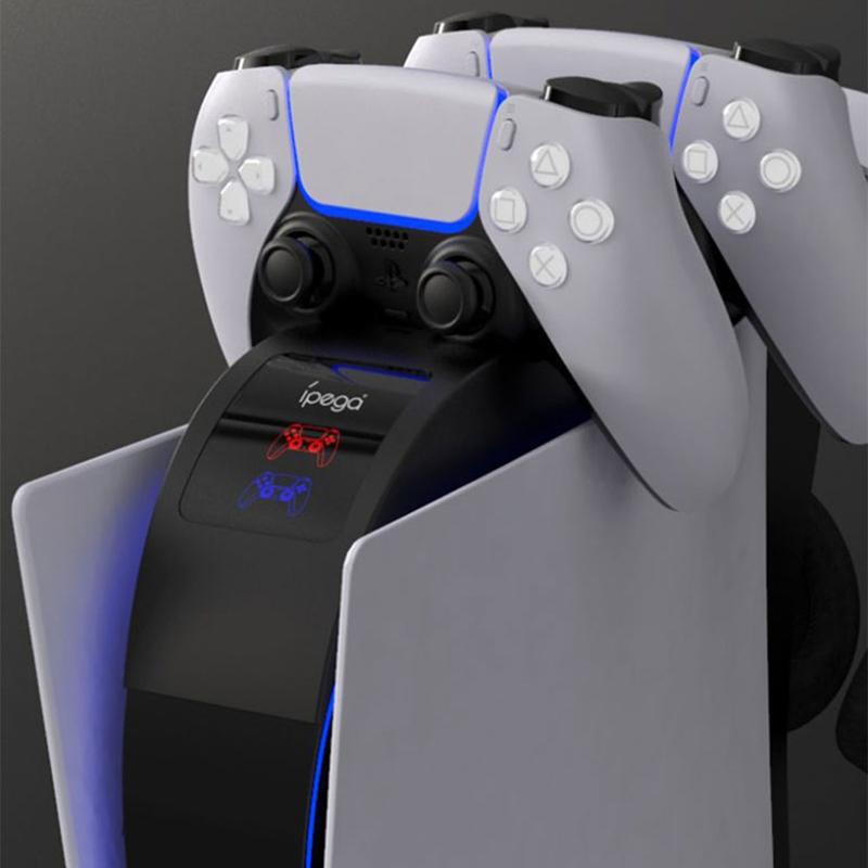 iPega PG-P5015 er den ultimate løsningen for enhver PS5-eier som ønsker å holde sitt gaming-oppsett organisert og effektivt... Denne 2-i-1 ladestasjonen kombinerer flere funksjoner i én enhet, noe som gjør den til et must-have tilbehør for din PlayStation 5. Med innebygd kjølevifte og headset-stativ sikrer denne stasjonen at dine kontrollere alltid er ladet og klare til bruk, samtidig som din PS5 holdes kjølig under intense gaming-økter.