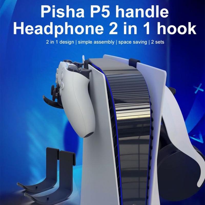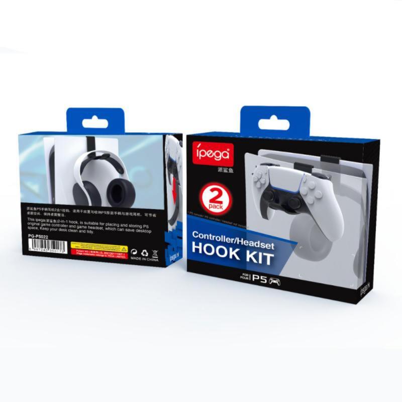 IPEGA PG-P5022 2 stk. veggmonteringsbrakett, oppheng og oppbevaringsstativ for PS5-konsollkontroller med hodetelefonstøtte