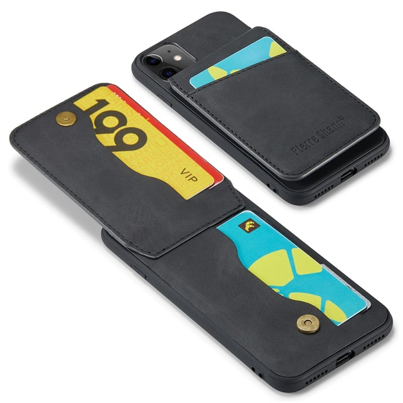 Fierre Shann Belagt Hybrid-deksel med Kortluke og Stativ til iPhone 11 - RFID-beskyttelse