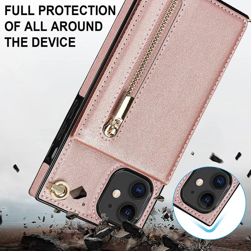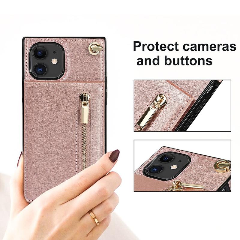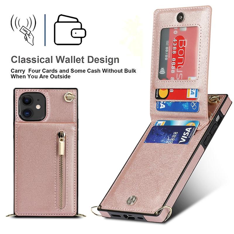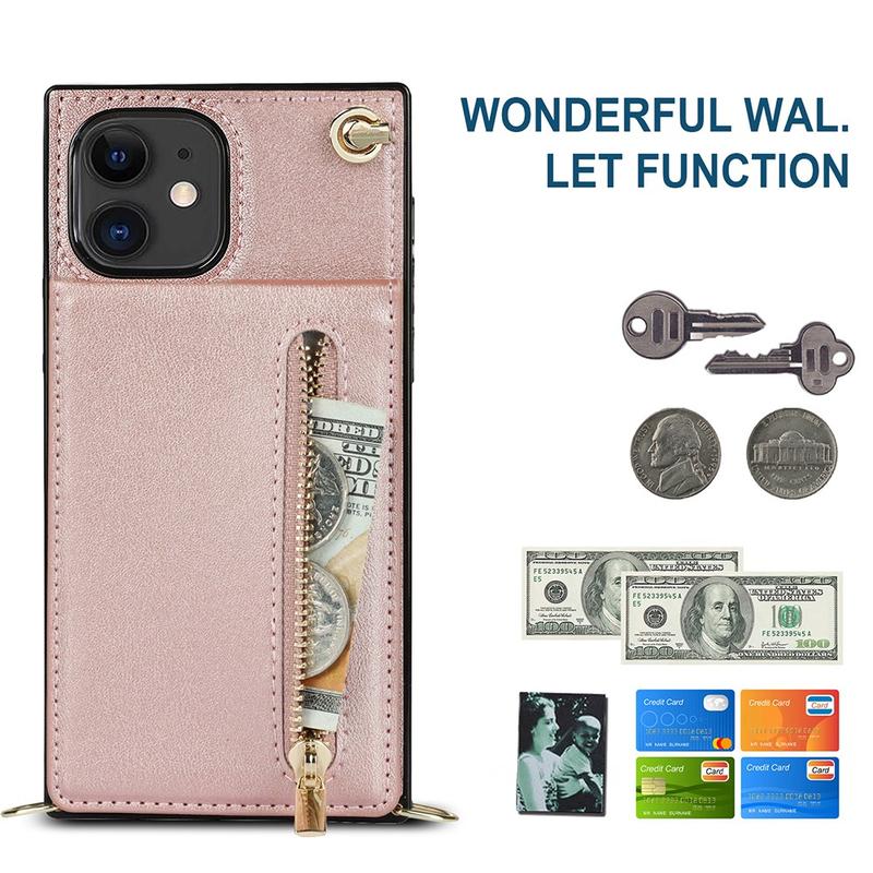 Hybrid-deksel med lommebok og nøkkelbånd til iPhone 11