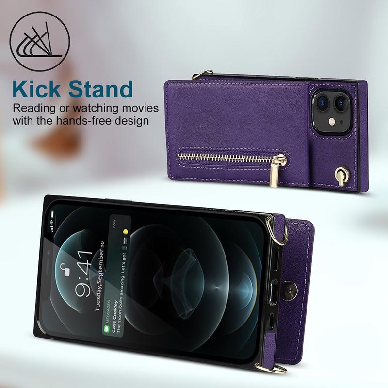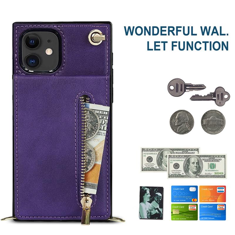 Hybrid-deksel med lommebok og nøkkelbånd til iPhone 11
