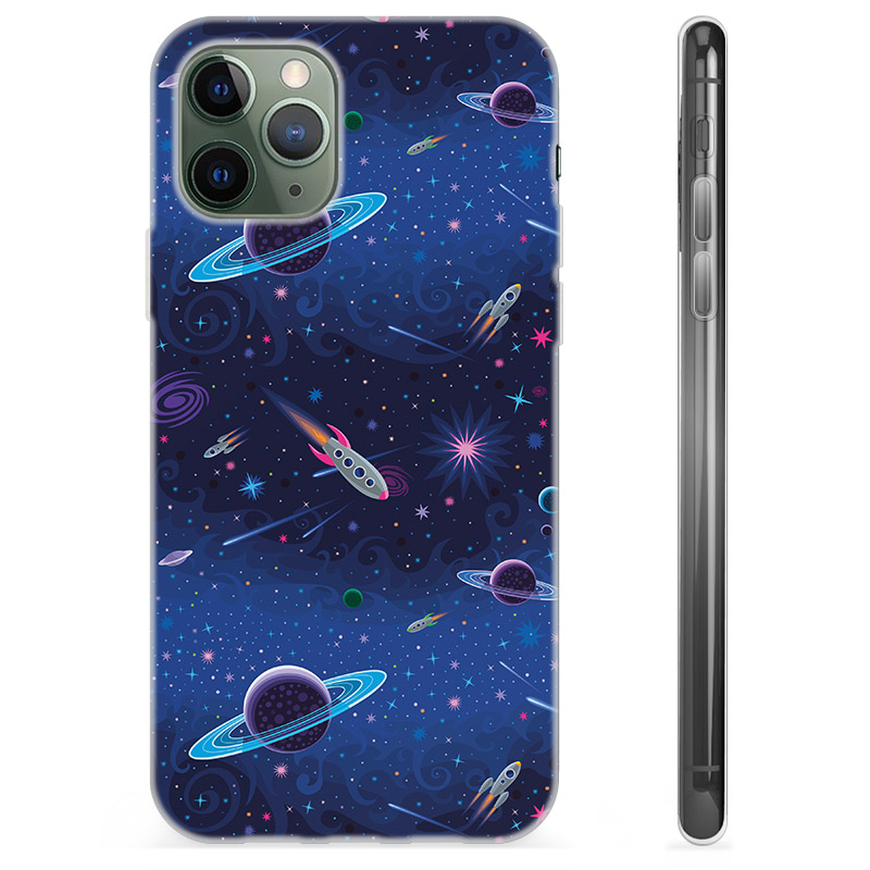 Dette iPhone 11 Pro TPU-dekselet er laget med et univers-tema, perfekt for de som er fascinert av kosmos og stjernehimmelen. Designet viser en fargerik fremstilling av ytre rom med ulike elementer som stjerner, planeter, kometer og romskip som svever mot en mørkeblå bakgrunn som representerer verdensrommet. Dekselet er laget av slitesterk og fleksibel TPU (termoplastisk polyuretan), som gir utmerket beskyttelse mot støt og fall.