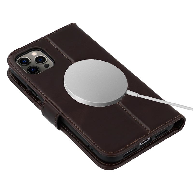 MyTPhone CardMate Premium lommebokveske i lær for iPhone 12, iPhone 12 Pro - stativfunksjon, kortholder, støtte for trådløs lading, 2x skjermbeskytter
