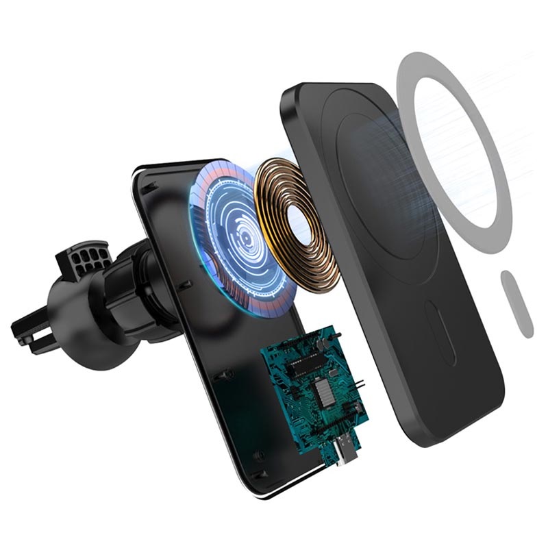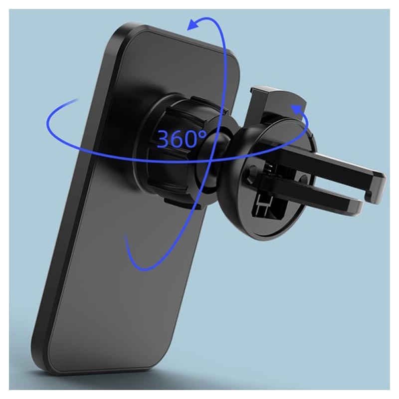 Denne lufteventilholder for din iPhone 12/13/14/15/16/17/Air -modell er forsterket med en trådløs ladefunksjon, slik at du aldri går tom for strøm mens du er på farten. Den trådløse laderen gir ladeeffekt på opptil 15W, med en stabil strøm og temperatur for sikker og pålitelig lading. Den sterke magnetringen som er innebygd i holderen, holder iPhone 12/13/14/15/16/17/Air-smarttelefonen godt på plass selv på ujevn vei. Takket være luftventilmonteringen med en 360-graders rotering, vil smarttelefonen forbli i en perfekt visningsposisjon.