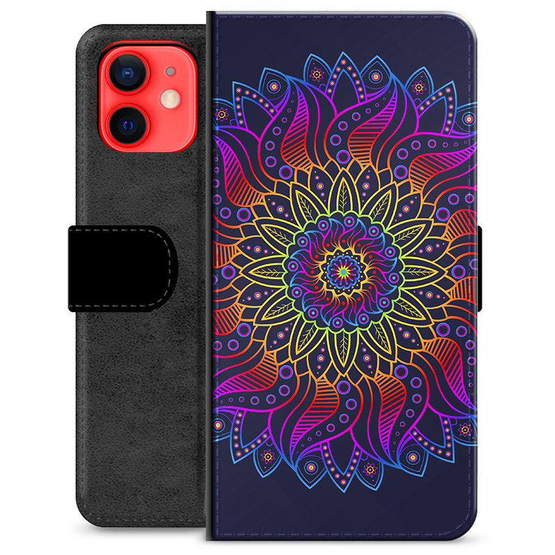 iPhone 12 mini Premium Lommebok-deksel - Fargerik Mandala