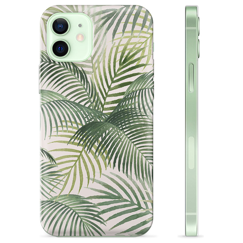 TPU-dekselet for iPhone 12 med tropisk mønster er et holdbart og stilig tilbehør for din smarttelefon. Dette fleksible dekselet er laget av termoplastisk polyuretan, et materiale som er kjent for sin holdbarhet og elastisitet, noe som sikrer en god passform rundt din iPhone 12. Dekselets tropiske design, fremhevet av grønne palmeblader på en lysebakgrunn, gir telefonen din et friskt og sommerlig utseende.