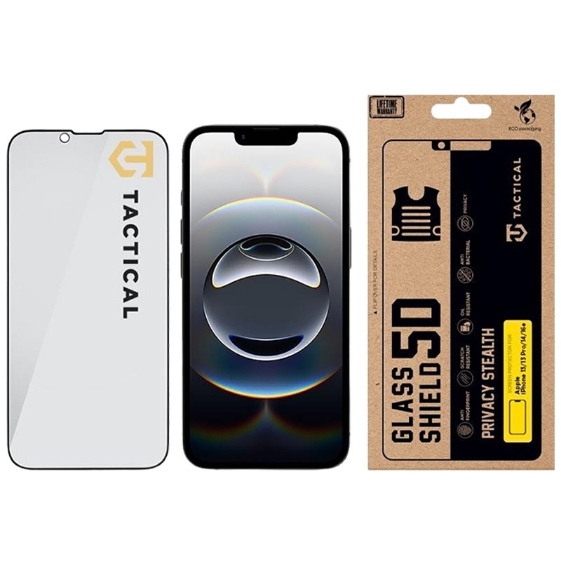 iPhone 13/13 Pro/14/16e/17e Tactical Glass Shield Privacy Stealth 5D Beskyttelsesglass - 9H - svart kant